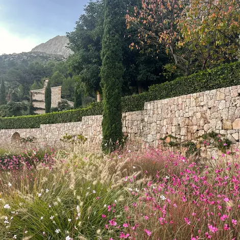 Nestled in the breathtaking Tramuntana mountains, a UNESCO World Heritage Site, this historic 100-acre estate offers panoramic 360 views and a truly remarkable setting. The garden had a strong structural foundation but the owners wanted to elevate it with luxury garden design that would bring greater cohesion, beauty, and year-round interest while making the outdoor spaces more sustainable and environmentally sensitive.